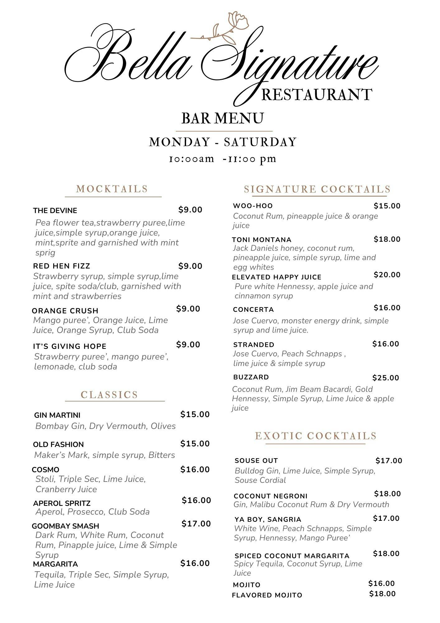 Savor the taste. Feel the ambiance. Experience Bella Signature — Nassau’s destination for exceptional dining.